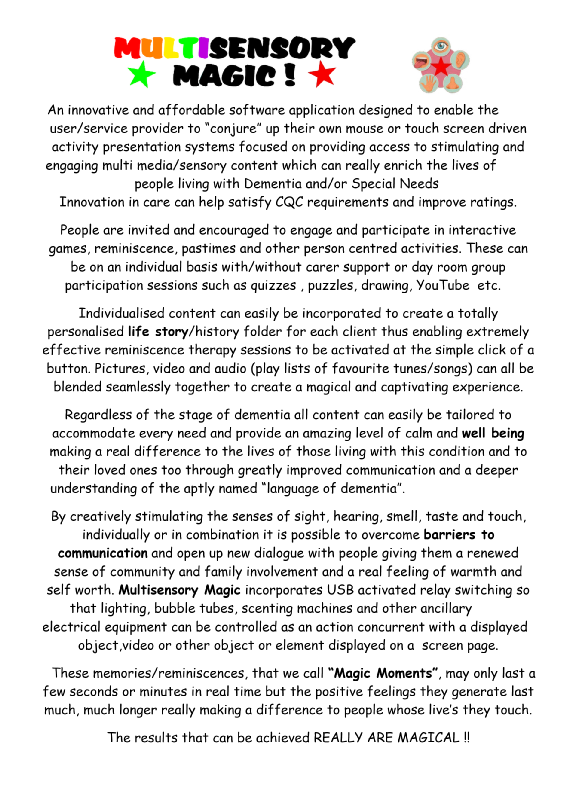 FOLLOW THE LINK BELOW TO DOWNLOAD A FREE EVALUATION COPY OF MULTISENSORY MAGIC.